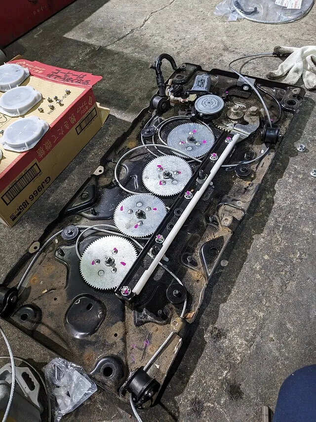 車いすリフトを分解し消耗品や劣化部品を交換する事でリフトがスムーズに作動します。